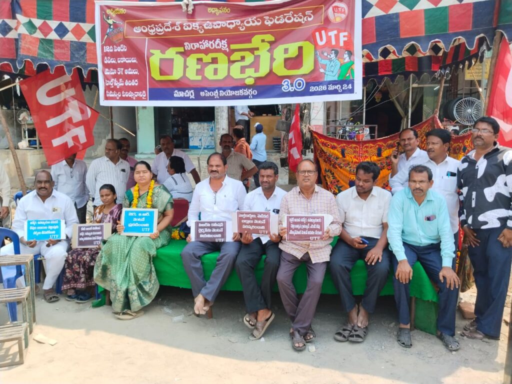 ఆంధ్రప్రదేశ్ ఐక్య ఉపాధ్యాయ ఫెడరేషన్ (యూటీఎఫ్) ఆధ్వర్యంలో ఉపాధ్యాయుల సమస్యల పరిష్కారం కోసం మాచర్ల నియోజకవర్గ స్థాయిలో ‘రణభేరి 3.0’ కార్యక్రమం భాగంగా ఒకరోజు నిరాహార దీక్ష చేపట్టారు. పట్టణంలోని తహసీల్దార్ కార్యాలయం ఎదుట ఏర్పాటు చేసిన దీక్ష శిబిరాన్ని యూటీఎఫ్ సీనియర్ నాయకుడు గాదె కిరీటి రెడ్డి ప్రారంభించారు.