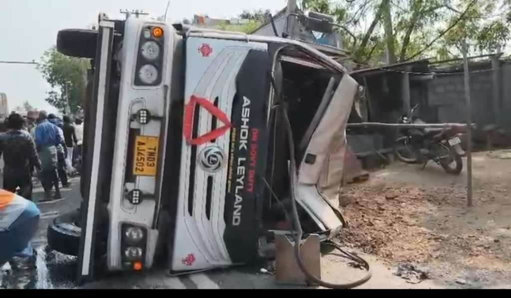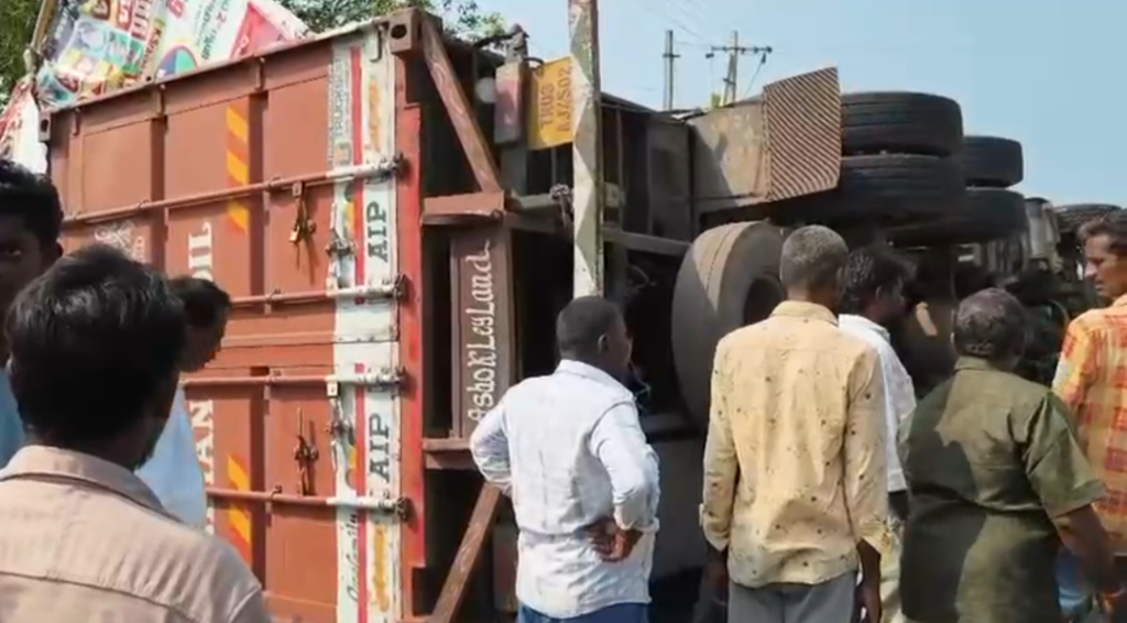 పల్నాడు జిల్లా నకరికల్లు అడ్డరోడ్ సమీపంలో అద్దంకి–నార్కెట్పల్లి హైవేపై మంగళవారం ఘోర రోడ్డు ప్రమాదం జరిగింది. అదుపు తప్పిన కంటైనర్ లారీ ముందుగా మినీ లారీని, తరువాత స్కూటీని ఢీకొట్టి బోల్తా పడింది.