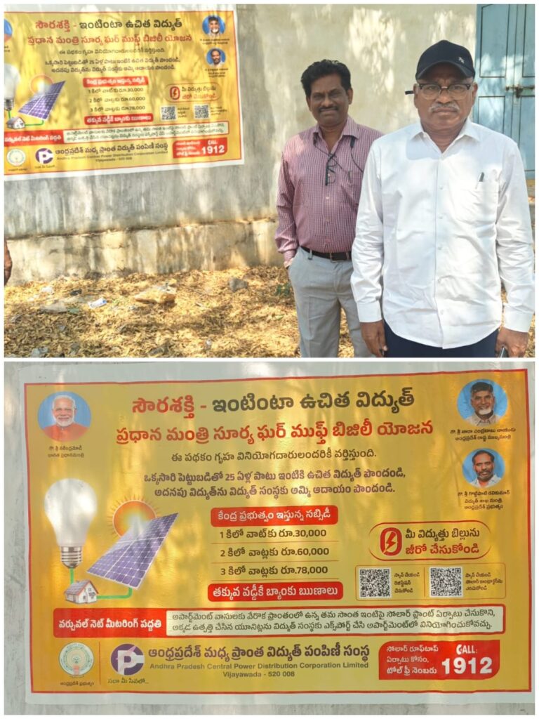 పల్నాడు జిల్లా దాచేపల్లి సబ్ డివిజన్ మరియు వీఆర్వో కార్యాలయంలో ప్రధానమంత్రి సూర్య ఘర్ ముఫ్ బిజిలీ యోజన పథకంపై అవగాహన కార్యక్రమం నిర్వహించారు. ఈ పథకం గృహ వినియోగదారులందరికీ వర్తిస్తుందని అధికారులు తెలిపారు.